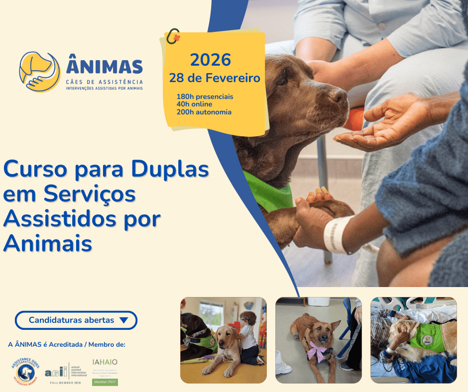 Inscrições encerradas!!!! A 28 de Fevereiro de 2026 inicia-se o Curso para Duplas em Serviços Assistidos por Animais! O curso decorre aos sábados das 9h às 18h, no Hospital São João, Porto, e termina a 04 de Julho com os exames finais. Poderá haver um ou dois...